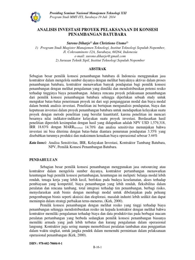 Analisis Investasi Proyek Pelaksanaan Di Konsesi