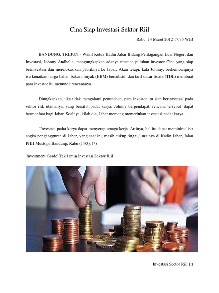 Mutlak peran bersama dalam menyelesaikan permasalahan di sektor riil, ujar baiquni di kompas 100 ceo forum, jakarta, kamis (24/11/2016). Ketika memutuskan untuk berinvestasi, ada beragam jenis investasi yang bisa anda pilih. Contohnya aset riil ini adalah properti (tanah & rumah), emas, dan logam mulia lainnya.