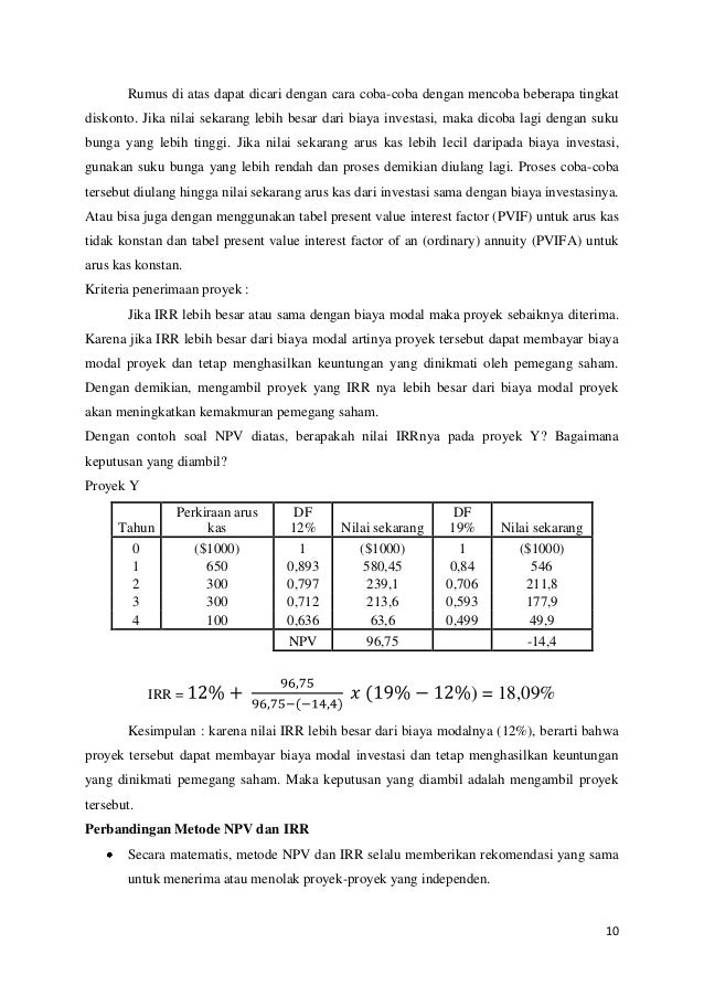 Persamaan dan rumus net present value (npv) ini bisa dilihat dibawah ini : Irr internal rate of return. Rumus yang digunakan untuk menghitung present value yaitu: