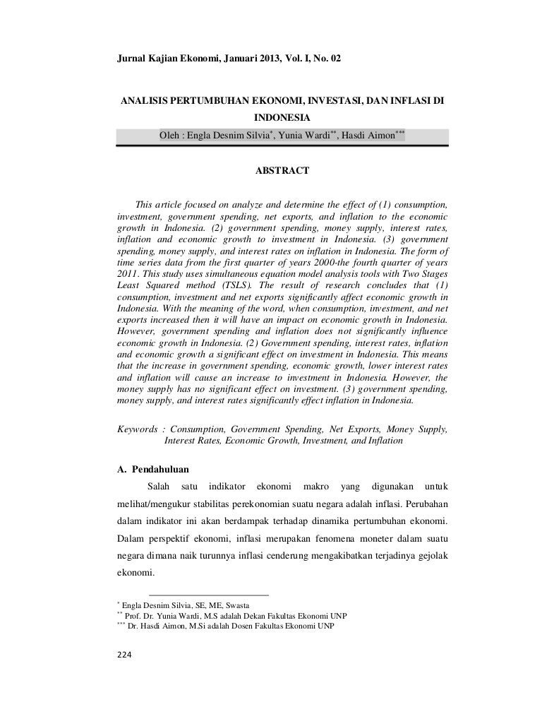 Analisis pertumbuhan ekonomi, investasi, inflasi di indonesia